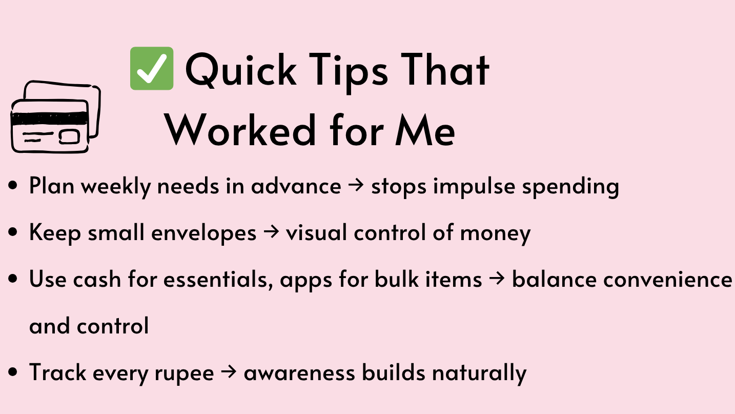 • 🏦 Fixed cash for the month: Withdraw ₹10,000 and use only that.